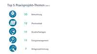 Die Energy Scouts konzipierten Effizienzprojekte mit erheblichen Einsparpotenzialen, die meisten davon in den Bereichen Beleuchtung, Photovoltaik und Druckluft.