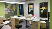 Letzte Woche wurde der neue Kreativraum genutzt, um zum Thema Weiterbildungen und Personalentwicklung projektübergreifend zu brainstormen. Kombiniert wurde das Ganze mit Kaffee und Wiedersehen auf Abstand. Dafür hat ein Kernteam etwas Vorarbeit geleistet und die grundlegenden Fragen zu Papier und im Kreativraum an die Wand gebracht.
