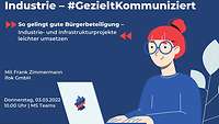 Im fünften Webinar aus der Reihe: #IndustrieGezieltKommuniziert wollen wir Ihnen praxisnah Chancen und Herausforderungen der Bürgerbeteiligung vorstellen und mit Ihnen gemeinsam die Einsatzmöglichkeiten bei Industrie- und Infrastrukturprojekten diskutieren.