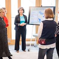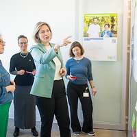Die rund zwanzig Projekte der Service GmbH – von „Berufsbildung ohne Grenzen“ bis „Zukunft Beschäftigtenwohnen“ – stellten sich mit anschaulichen Präsentationen vor, und zahlreiche Kolleginnen und Kollegen der DIHK nahmen die Einladung an, darunter DIHK-Hauptgeschäftsführerin Helena Melnikov, die beeindruckt resümiert: