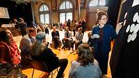 Meist ist es die Kamera am Laptop, die uns in anderer Leute Büro bringt, um über die biologische Vielfalt zu sprechen. Wir freuen uns aber immer, wenn wir den Laptop auch mal zuklappen und den Schreibtisch verlassen können. Dann geht es quer durch die Republik zu Werkshallen, Betriebsgärten und Kongressen. Dort stellen wir dann unser Projekt vor und sprechen beispielsweise darüber, warum gefüllte Blüten bei Pflanzen nicht viel für die Artenvielfalt tun und was die neuen EU-Richtlinien für Unternehmerinnen und Unternehmer bedeuten. Aber schauen Sie selbst…