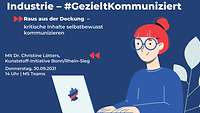 Im zweiten Webinar unserer Reihe „Industrie – #GezieltKommuniziert“ vermitteln wir Ihnen die Grundlagen für professionelle Kommunikation – mit besonderem Fokus auf schwierige Inhalte im Themenbereich Industrie. Im Webinar wollen wir Sie ermutigen, auch mit vermeintlich kritischen Themen die Öffentlichkeit zu suchen. Begleitet von einem Praxiseinblick geben wir Ihnen Instrumente und Handlungsoptionen an die Hand, mit denen Sie Ihre Kommunikation auch in kritischen Themenfeldern erfolgreich aufbauen und sich als Meinungsführer etablieren können.